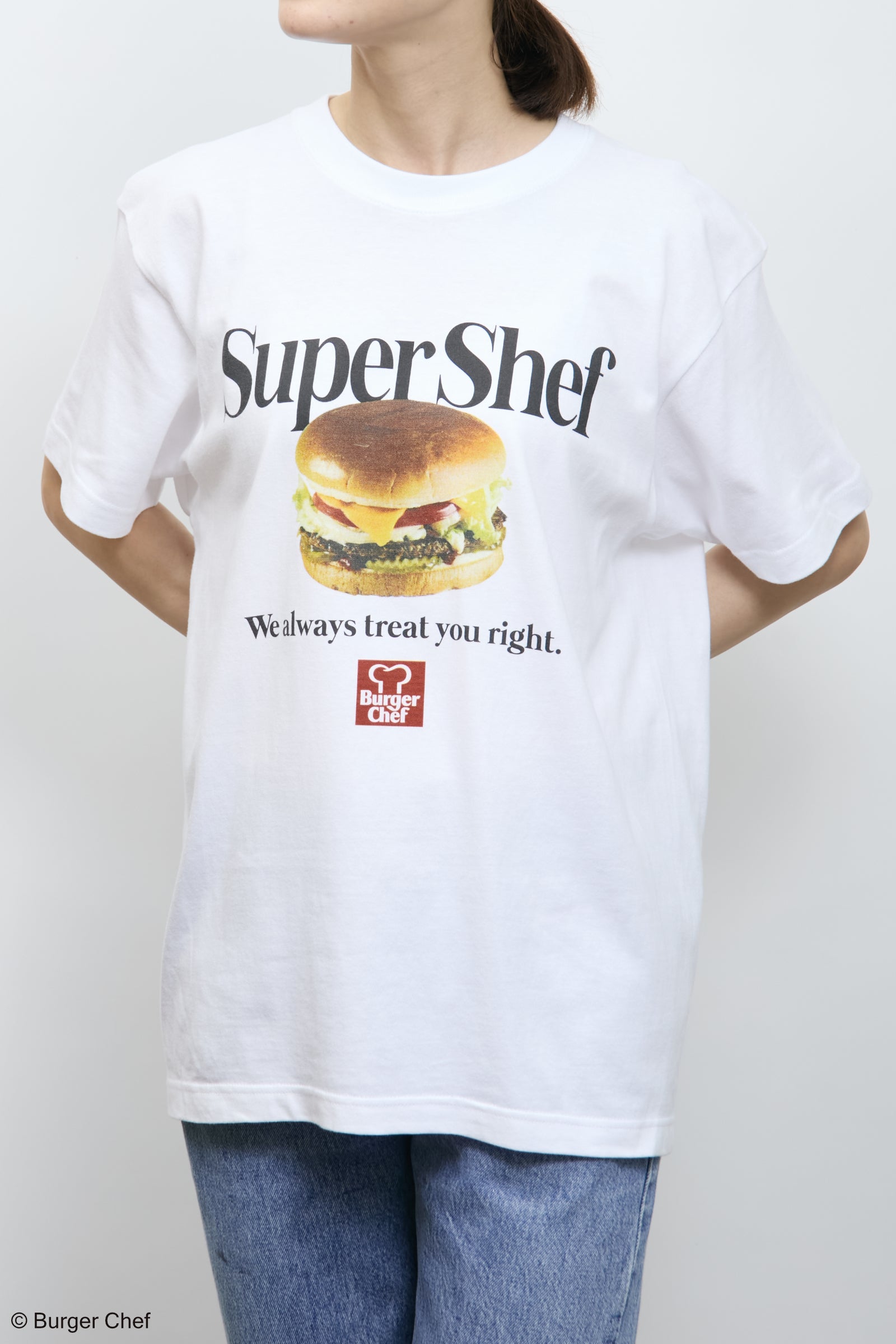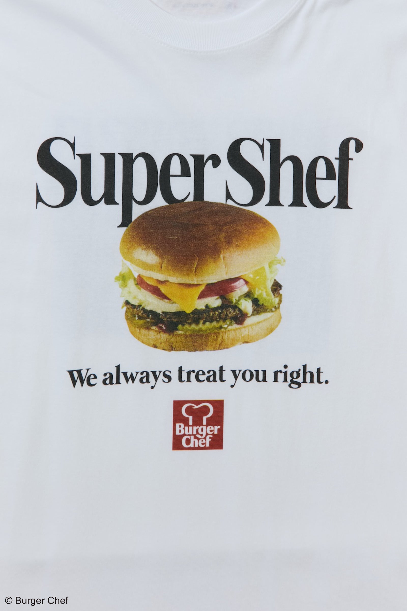Burger Chef(バーガーシェフ)の広告ビジュアルをフロントに落とし込んだTシャツ。