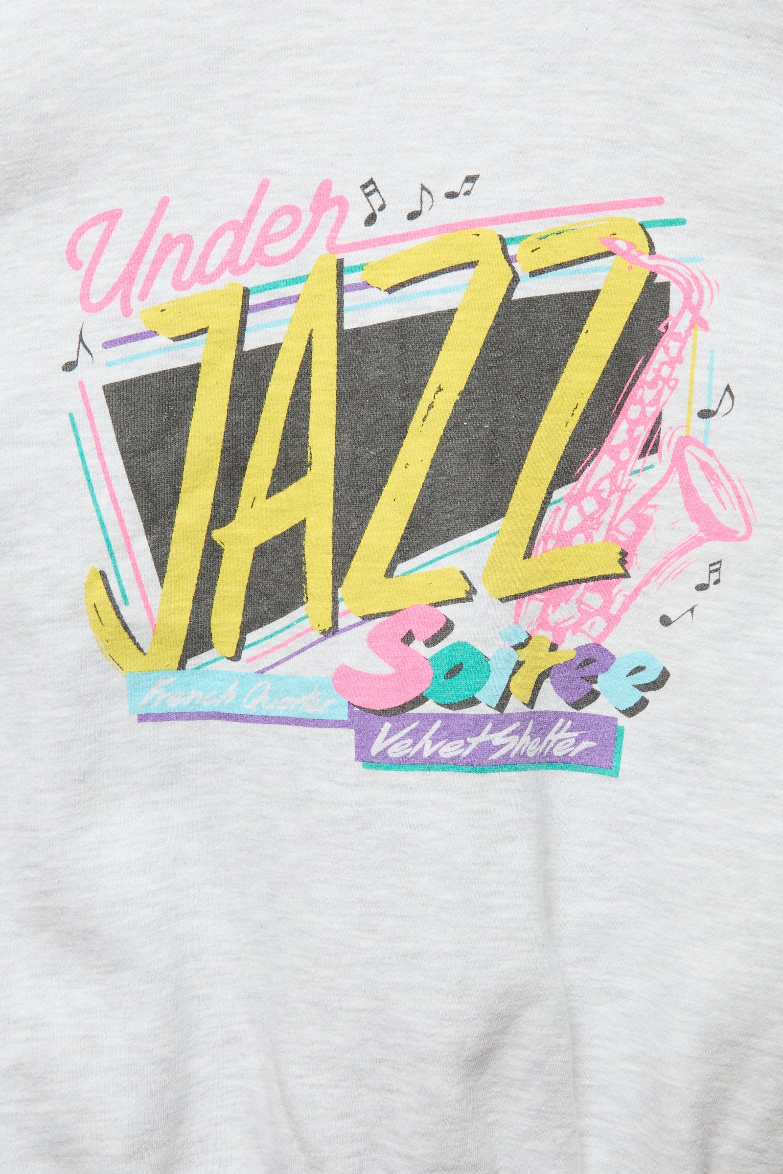 架空のジャズバンドのツアーをモチーフに作成したオリジナルスウェット。インナー使いにも映える印象的なアートに仕上がっています。