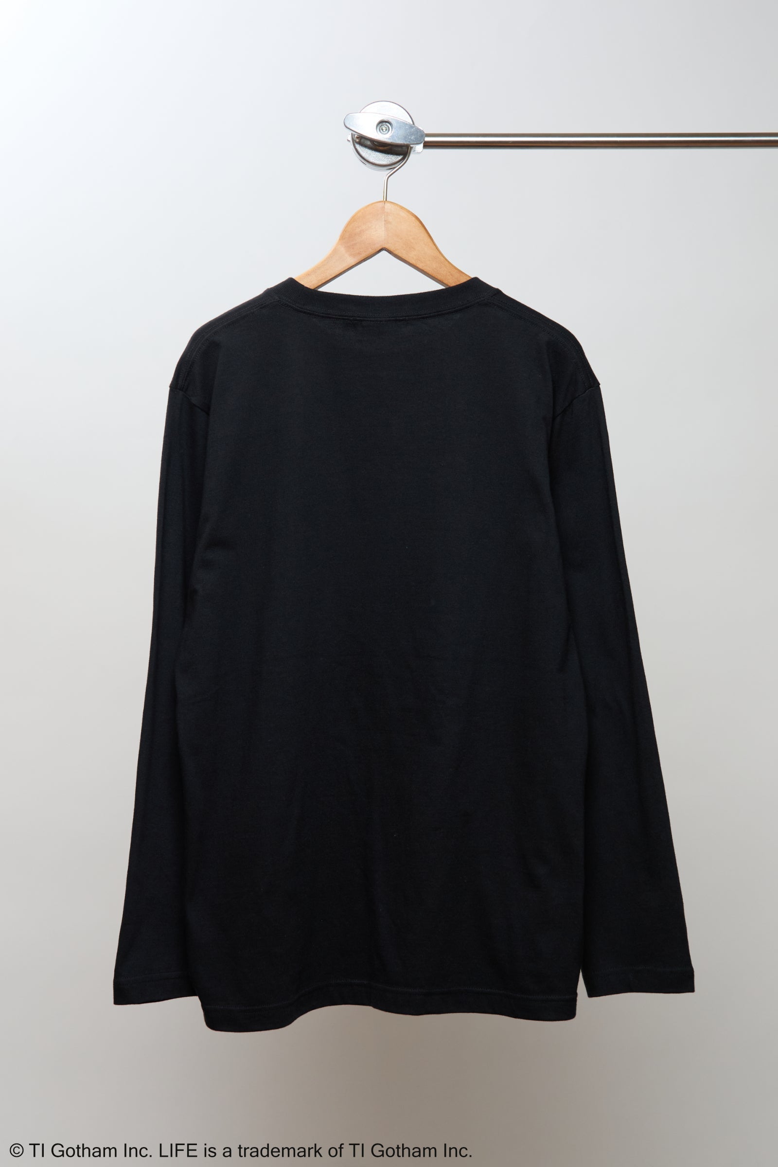ブラックのシックなボディに、洗練されたフォトが映えるロングスリーブTシャツです。