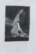 胸部と左袖に象徴的なロゴをあしらい、背面には彼のライブステージの圧倒的な瞬間を表現しています。