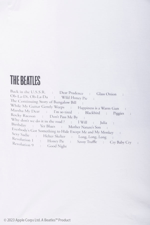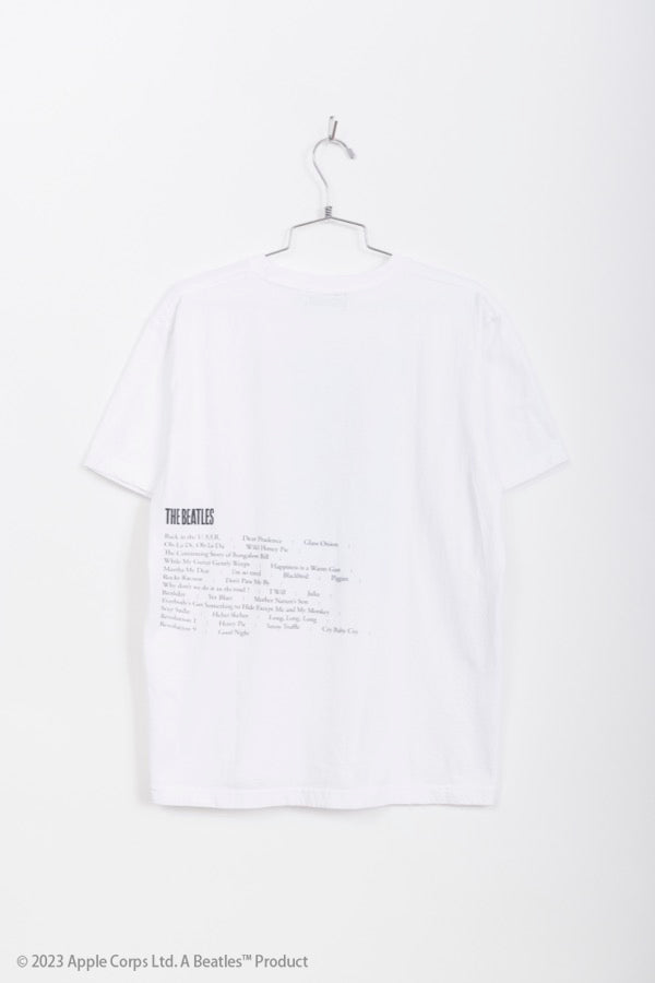 ビートルズとのコラボコレクションは「ホワイトアルバム」をモチーフに。ウォッシュをかけた風合いが心地よい1枚です。