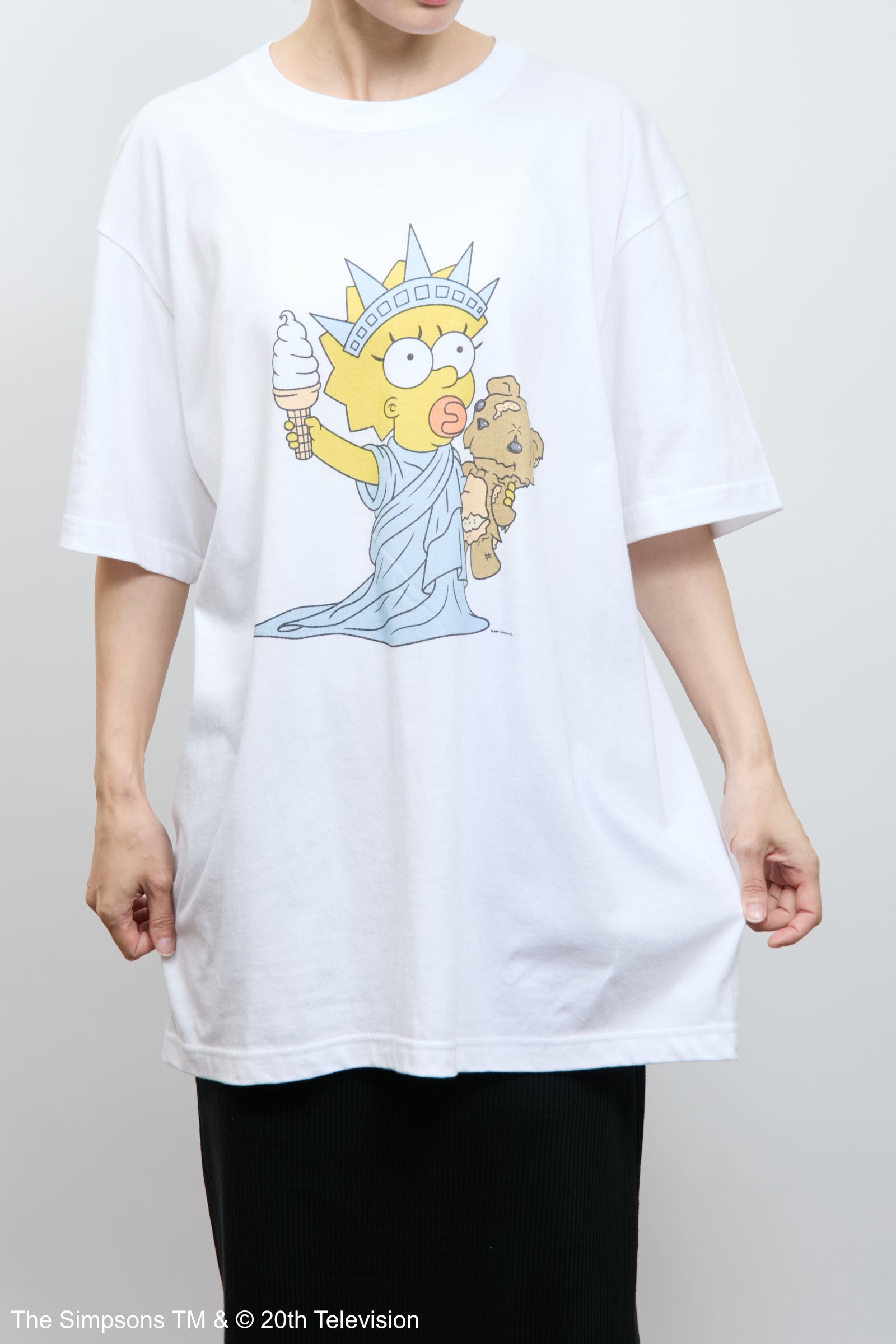「マギー・シンプソン」のアートをフロントに配したTシャツ。