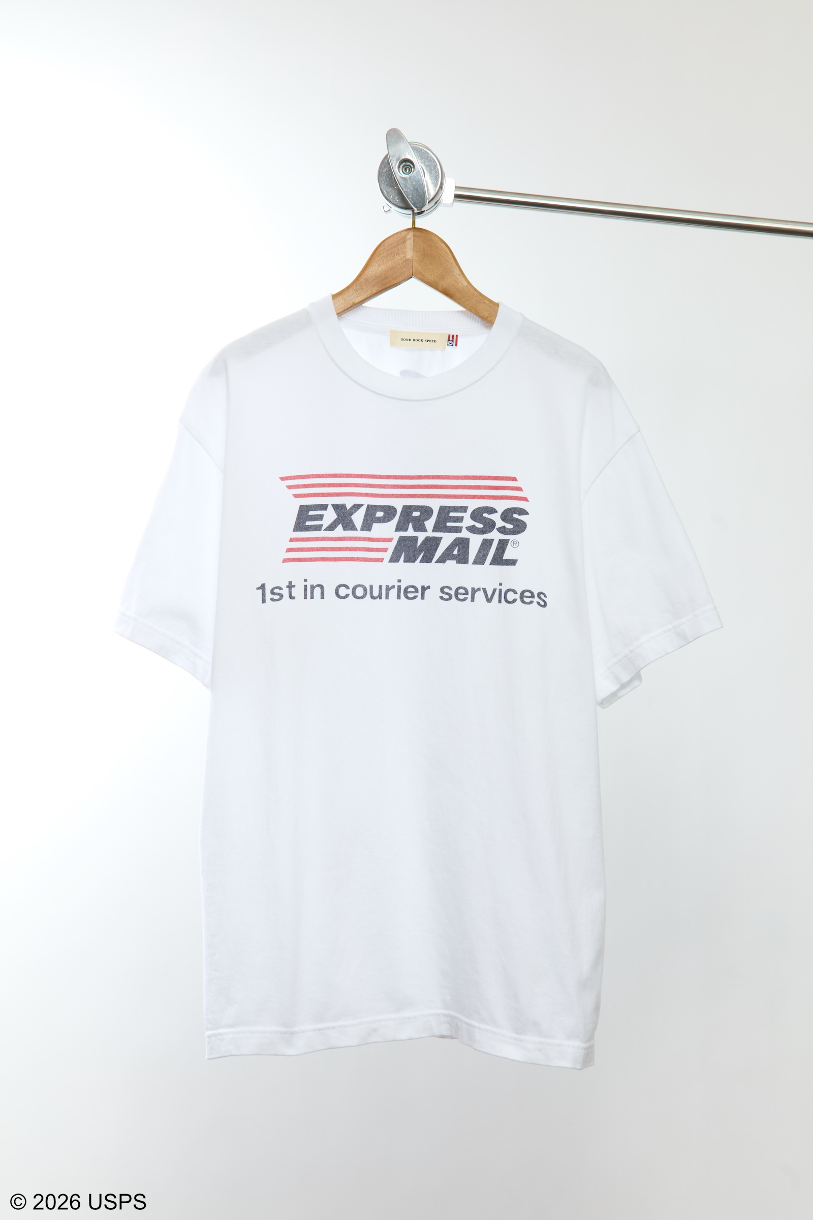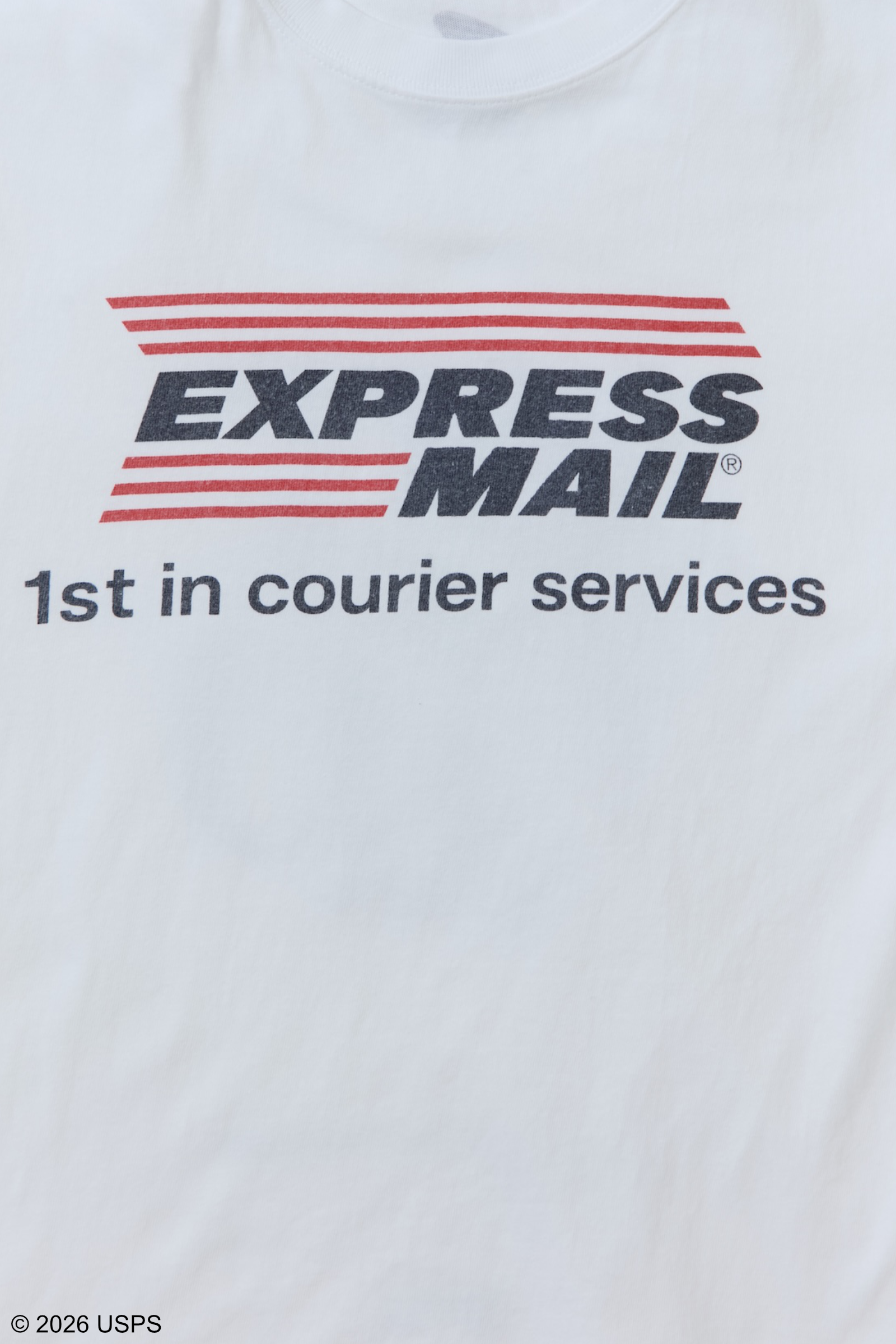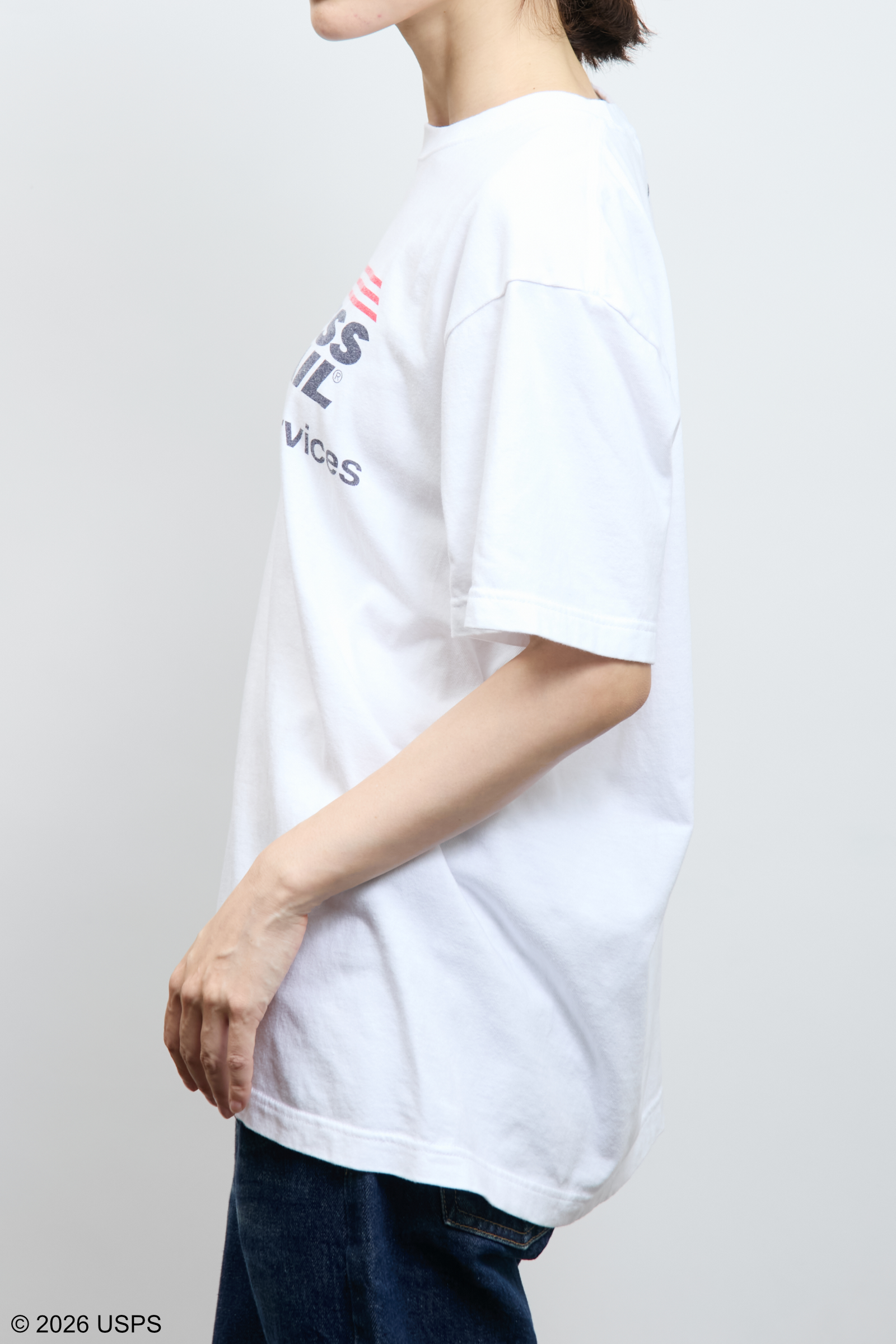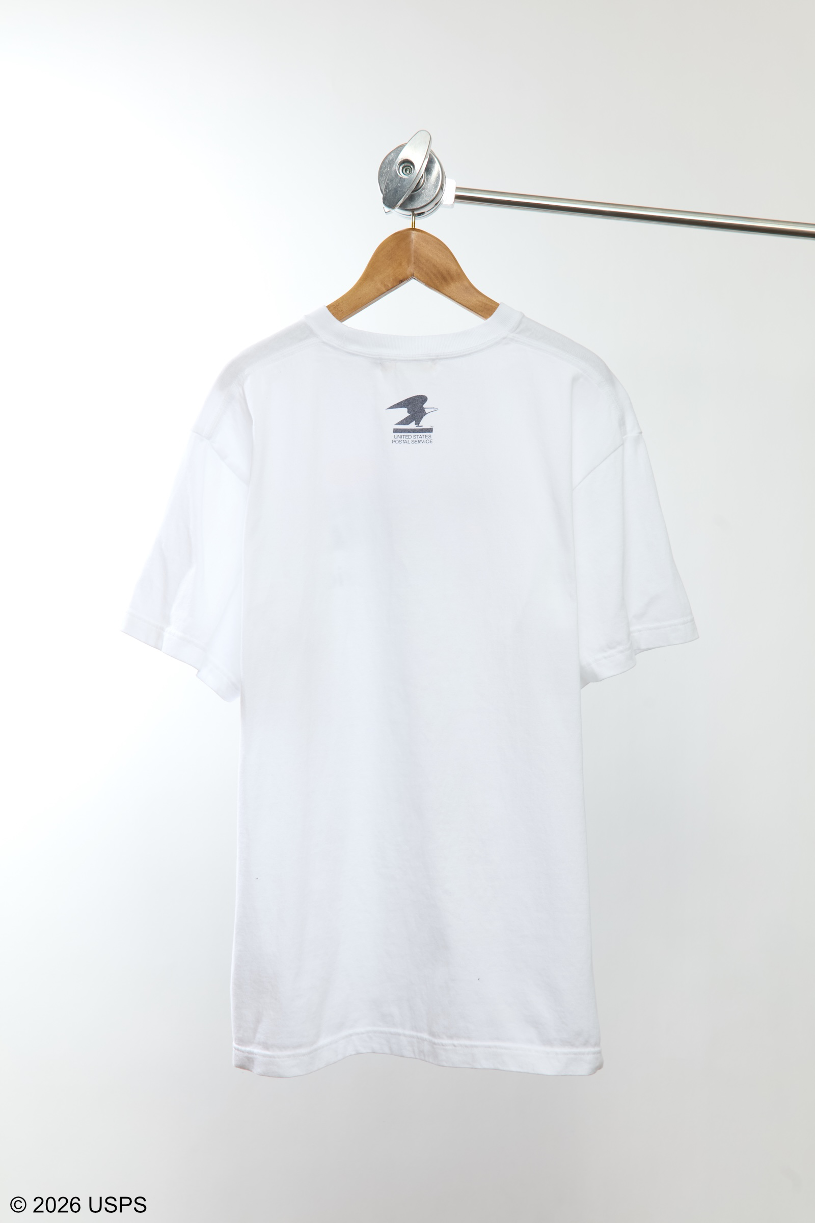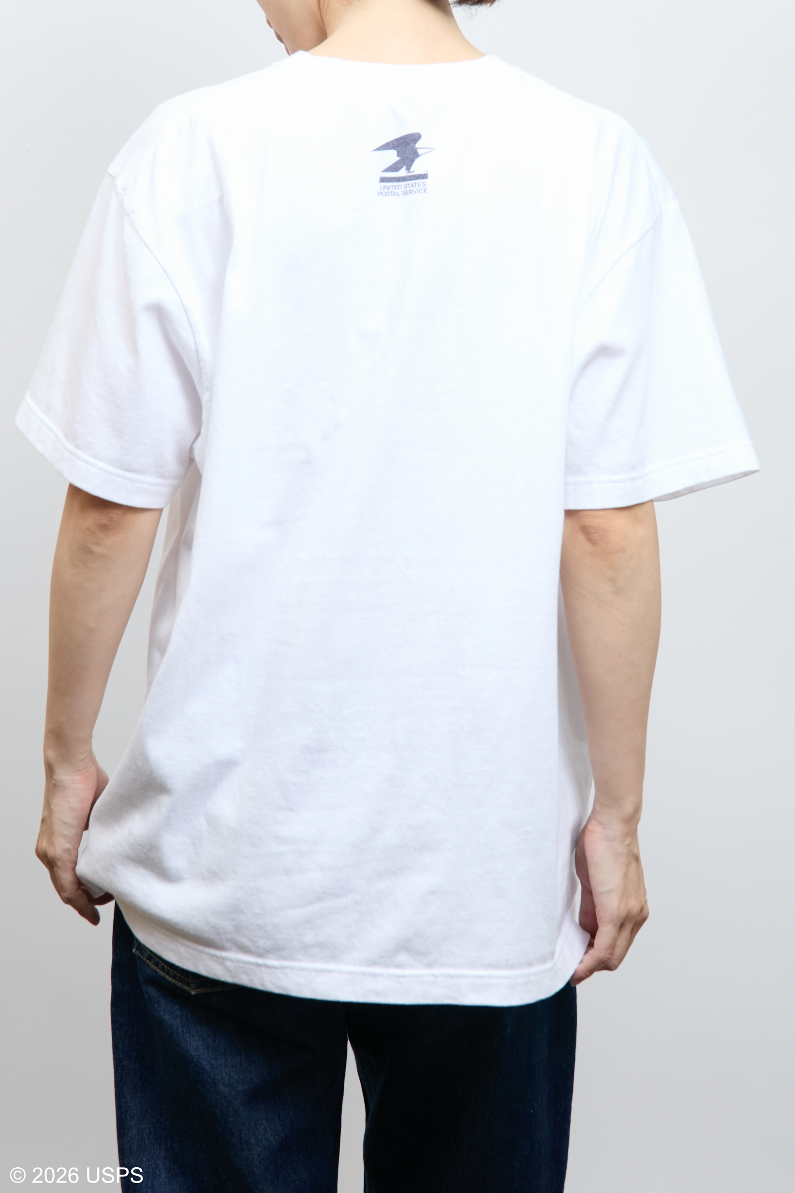 アメリカの郵便サービスを象徴する「USPS」のグラフィックをプリントしたTシャツ。
